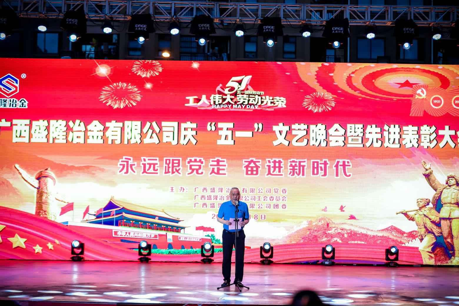 5月8日晚,开云官方站网页版登录入口-开云(中国)盛隆佳园文化广场歌声嘹亮,掌声如潮。由开云官方站网页版登录入口-开云(中国)党委、工会委员会、团委联合主办的“永远跟党走,奋进新时代——庆‘五一’文艺晚会暨先进表彰大会”在这里隆重举行。公司常务副总经理陈亮出席晚会并致辞,副总经理兼安环总监吕华民、副总经理兼技术中心主任刘光穆、总工程师兼规划发展部经理梁新亮、总经理助理兼广西广盛高强耐磨新材料有限公司总经理王文凯、党委常务副书记游元喜、工会主席兼总经理办公室主任刘明奇及各厂部主要领导出席。