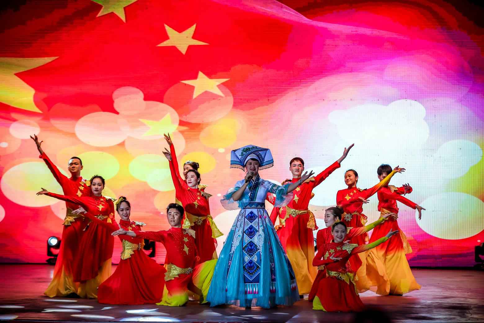 本次晚会以红色文化传承为主题,红歌红舞庆五一,喜迎建党一百年。演出在歌伴舞《我的祖国》中拉开了序幕,由盛隆文工团、艺园传媒等带来的舞蹈《咱们工人有力量》、《撸起袖子加油干》及特邀嘉宾中国民族唱法女高音歌唱家牟虹霓带来的歌伴舞《最美的歌儿唱给妈妈、虹霓颂》等多种形式的文艺节目,赞美了劳动者的磅礴力量与坚定信念,营造了喜庆和谐、感念党恩的节日氛围。其中由盛隆合唱团带来的《唱支山歌给党听》以公司献礼建党一百年拍摄的“感党恩、跟党走”主题MV为背景,悠扬回荡的歌声及一幕幕精彩的画面带领现场观众一同穿越历史,重温党的光辉历程,在时代的乐章里唱响奋进新征程的赤诚与豪迈,把晚会推向高潮。小品节目《党恩感“懒”力》以公司就业扶贫为切入点,深刻体现了“脱贫靠奋斗、致富感党恩”,精彩的演出赢得了观众的热烈掌声。